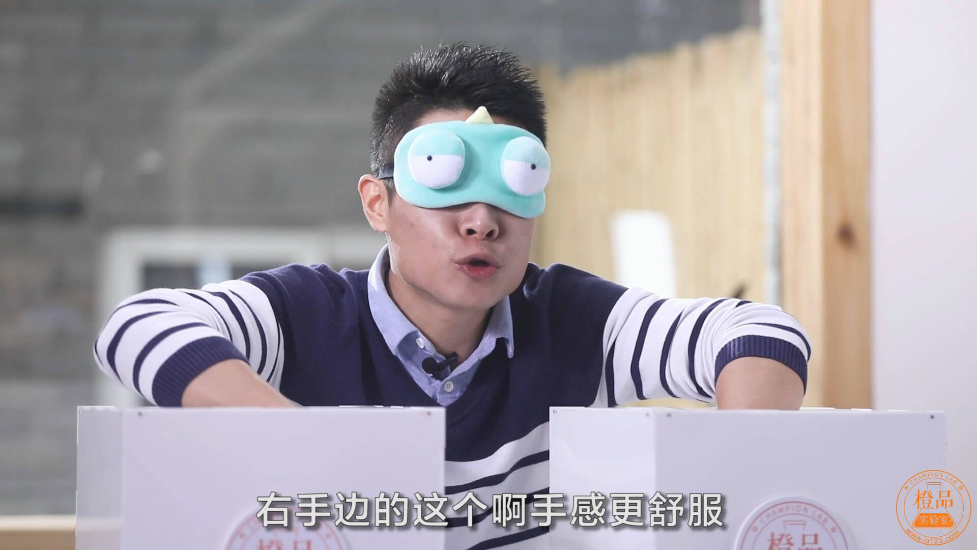 在两个恐怖箱内,我们分别放了两款纸尿裤,夏老师在通过触摸盲测之后,比较得出画面左手边的纸尿裤更柔软、更轻薄。BINGO!画面左手边的就是我们今天评测的对象——妈咪宝贝云柔干爽纸尿裤,在第一轮盲测中,它就脱颖而出啦!