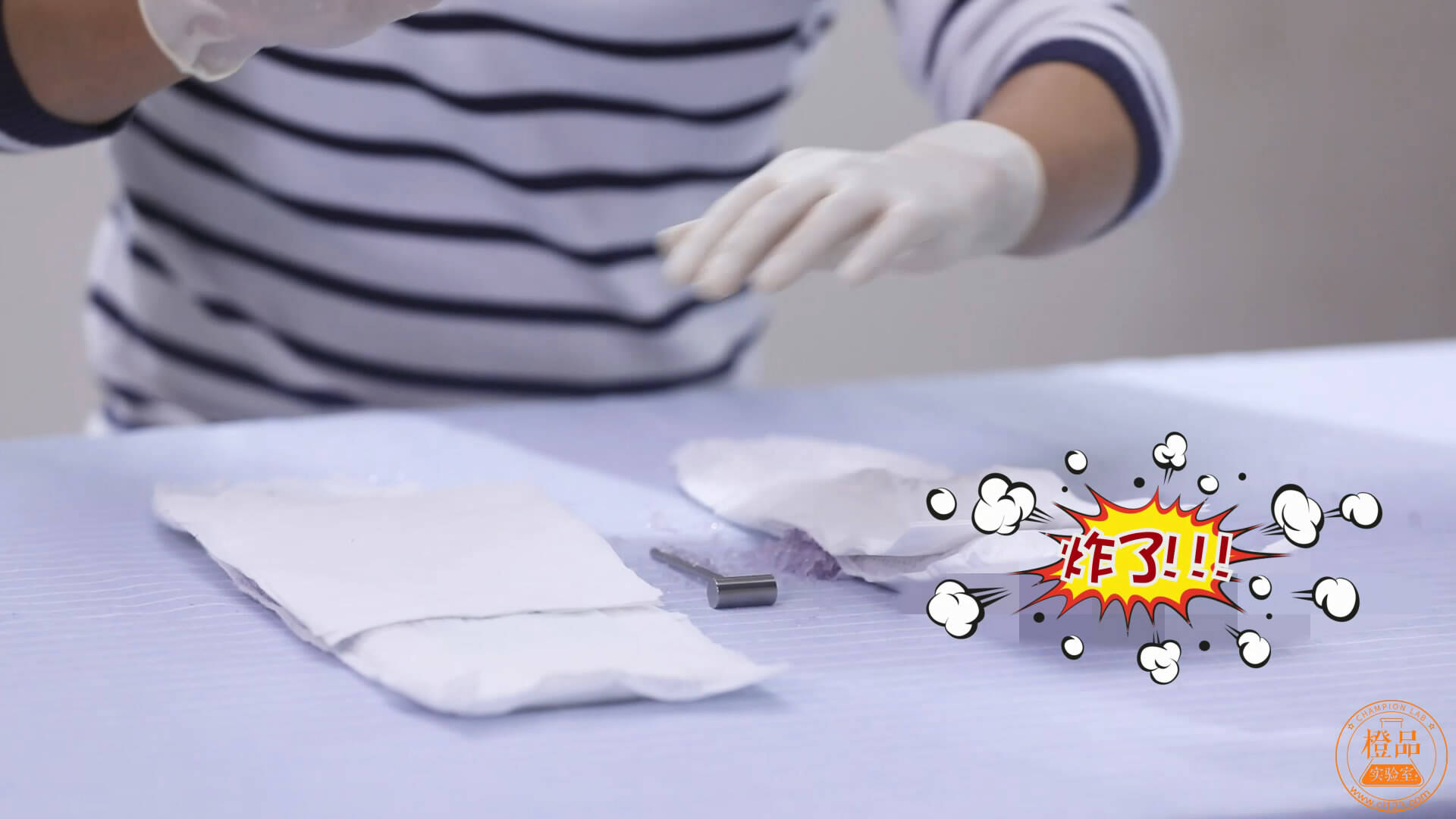 重头戏来了!为了测试妈咪宝贝云柔干爽纸尿裤的吸收速度,我们夏老师偷偷拿来了女同事桌上昂贵的蓝枸茶,但是不幸被抓包,差点一顿揍……即使这样,实验还是要继续做的!就冲这专业精神,加分!
